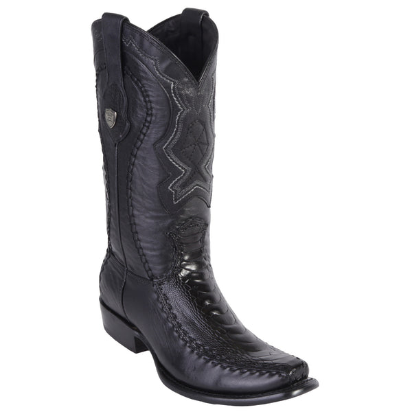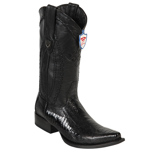 Mens Short Black Ostrich Leather Boots Square Toe - Los Altos Boots