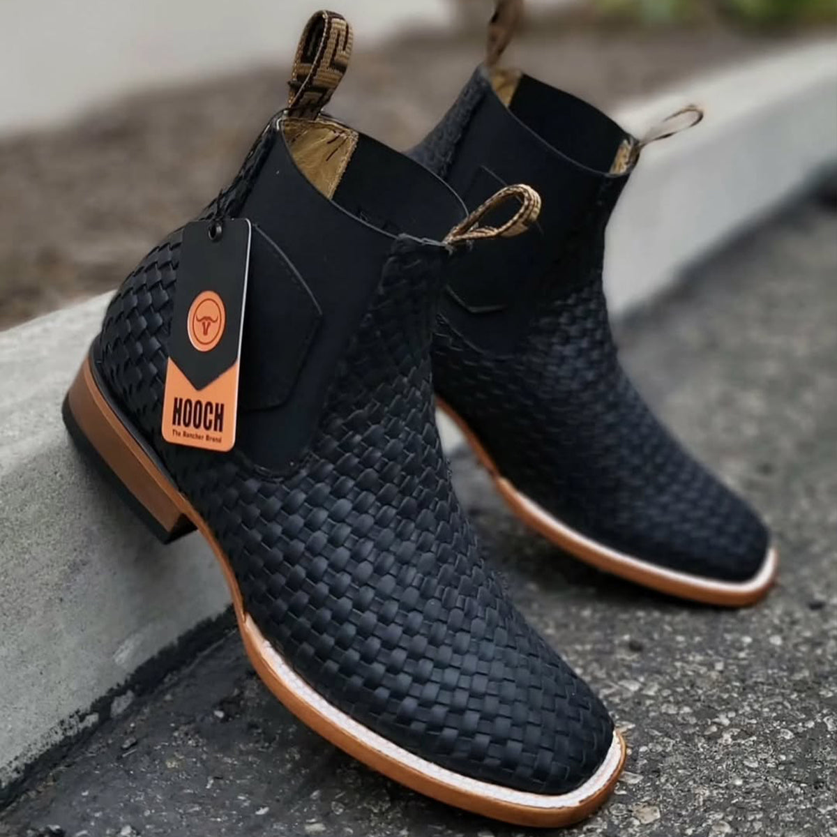 These square-toe boots feature a hand braided design to add a touch of boldness to your style.