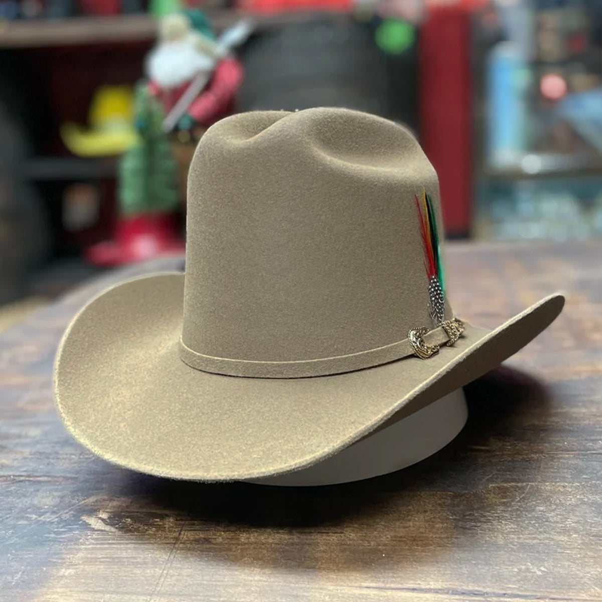 This Tombstone nutria felt hat showcases the distinctive Los Dos Carnales style with a tall 5" crown and short 3 1/4" brim. The nutria (beaver brown) color offers a rich, earthy tone that's both classic and versatile.