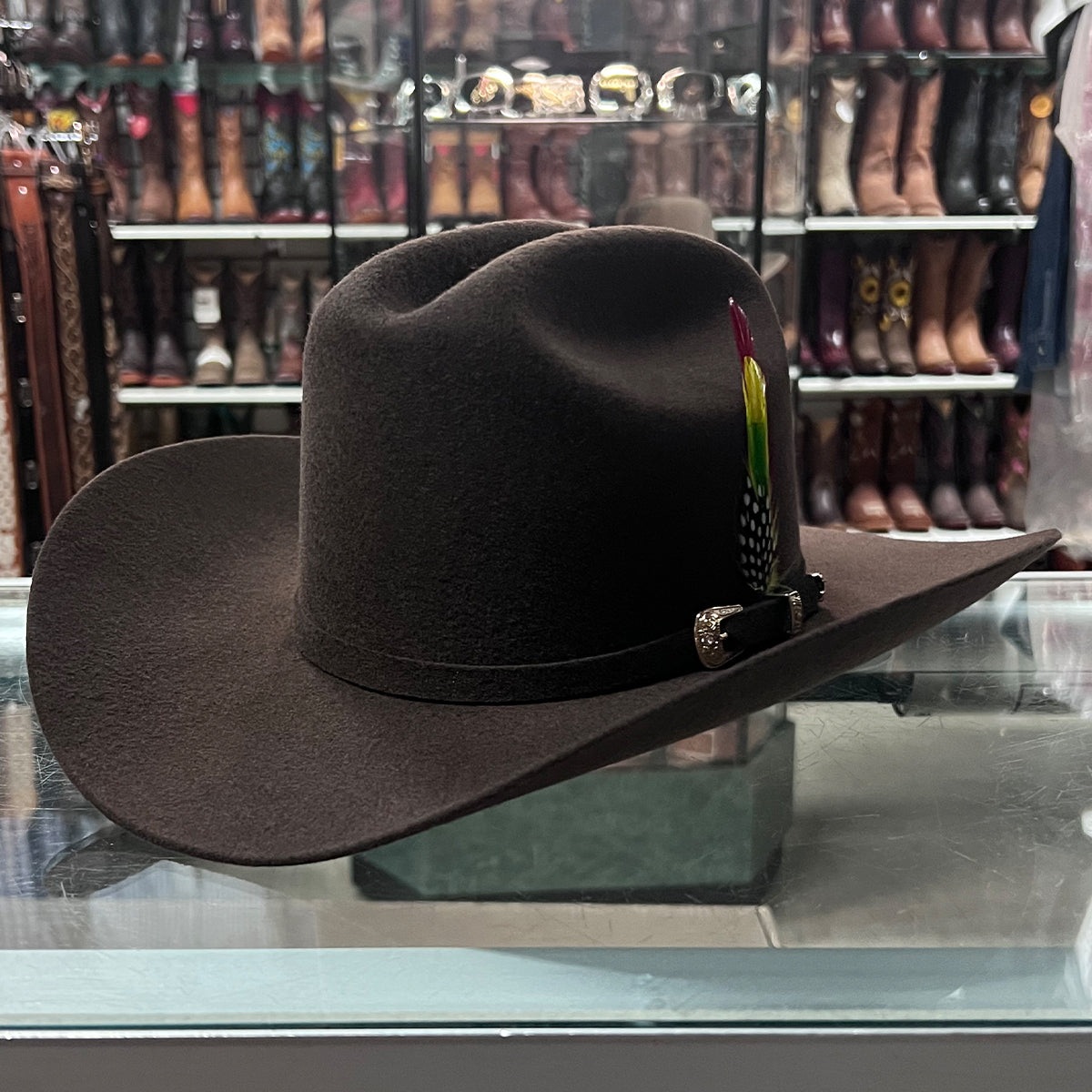 El ícono estilo Sinaloa. Elaborado con precisión, esta tejana cuenta con un estilo de ala tradicional y una corona clásica de ganadero.