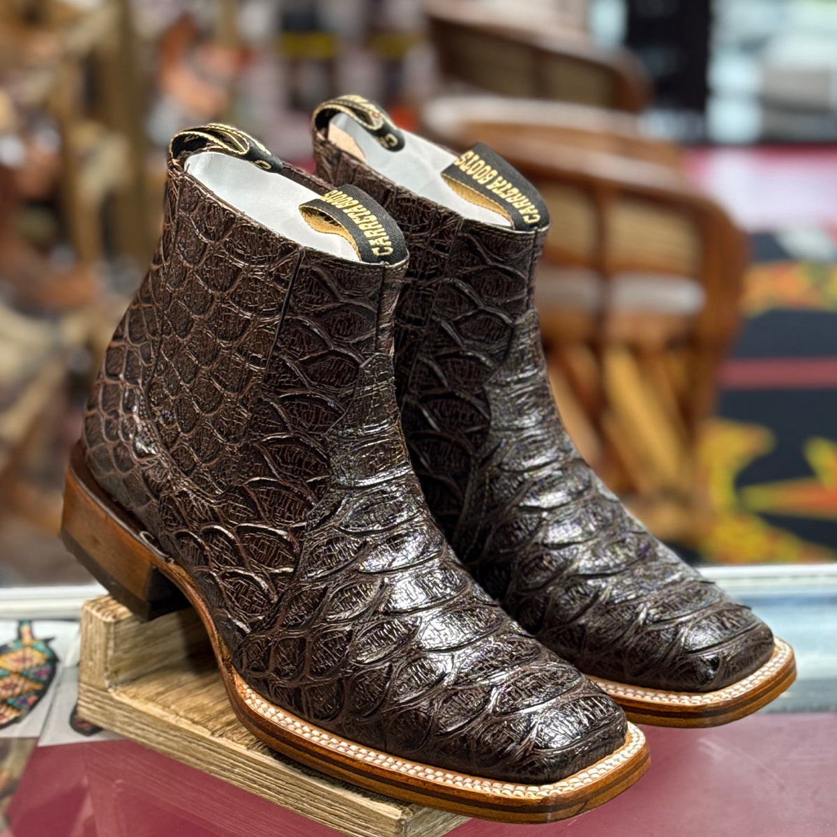 Estos botines vaqueros presentan un diseño único de estampado de cocodrilo que agrega un toque de audacia a cualquier atuendo.