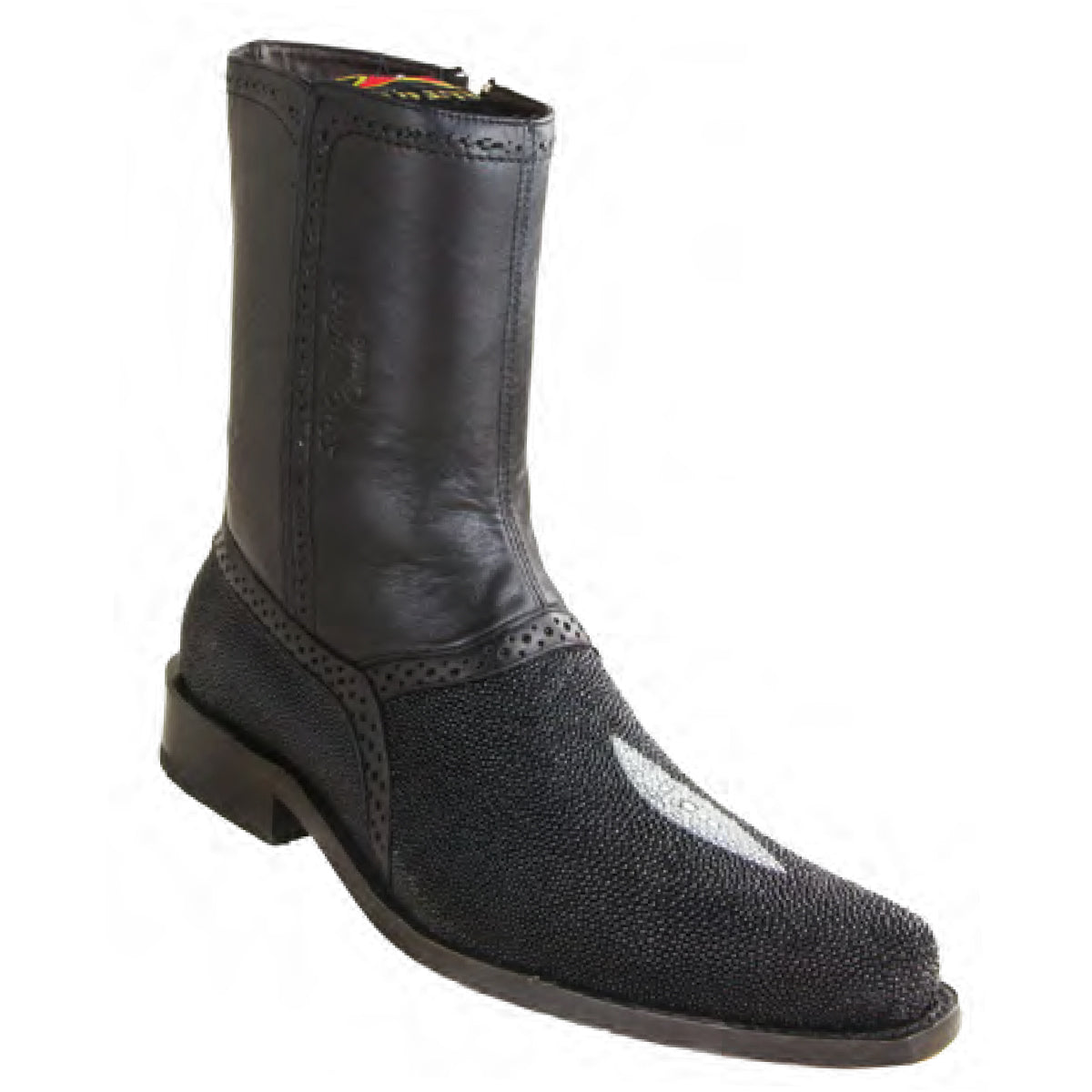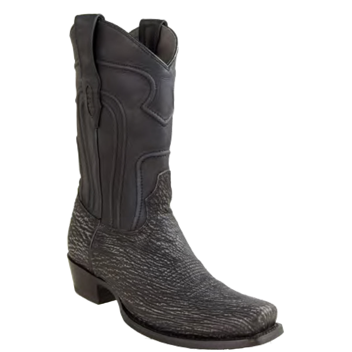 La Sierra Black Pirarucu Fish Print Boots Square Toe