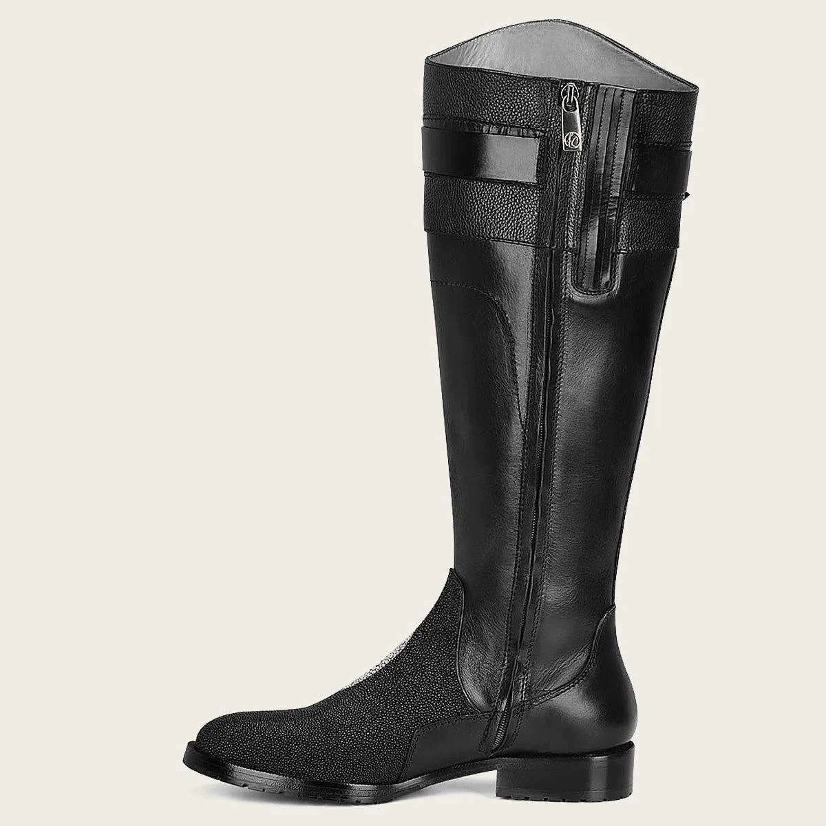 Bota Cuadra de montar en piel de Mantarraya. Con su diseño elegante y su impecable artesanía, esta bota es el epítome del lujo y la exclusividad. El cuero de Mantarraya original y los detalles cosidos crean una experiencia de conducción verdaderamente excepcional y sofisticada. Eleva tu estilo con Cuadra.