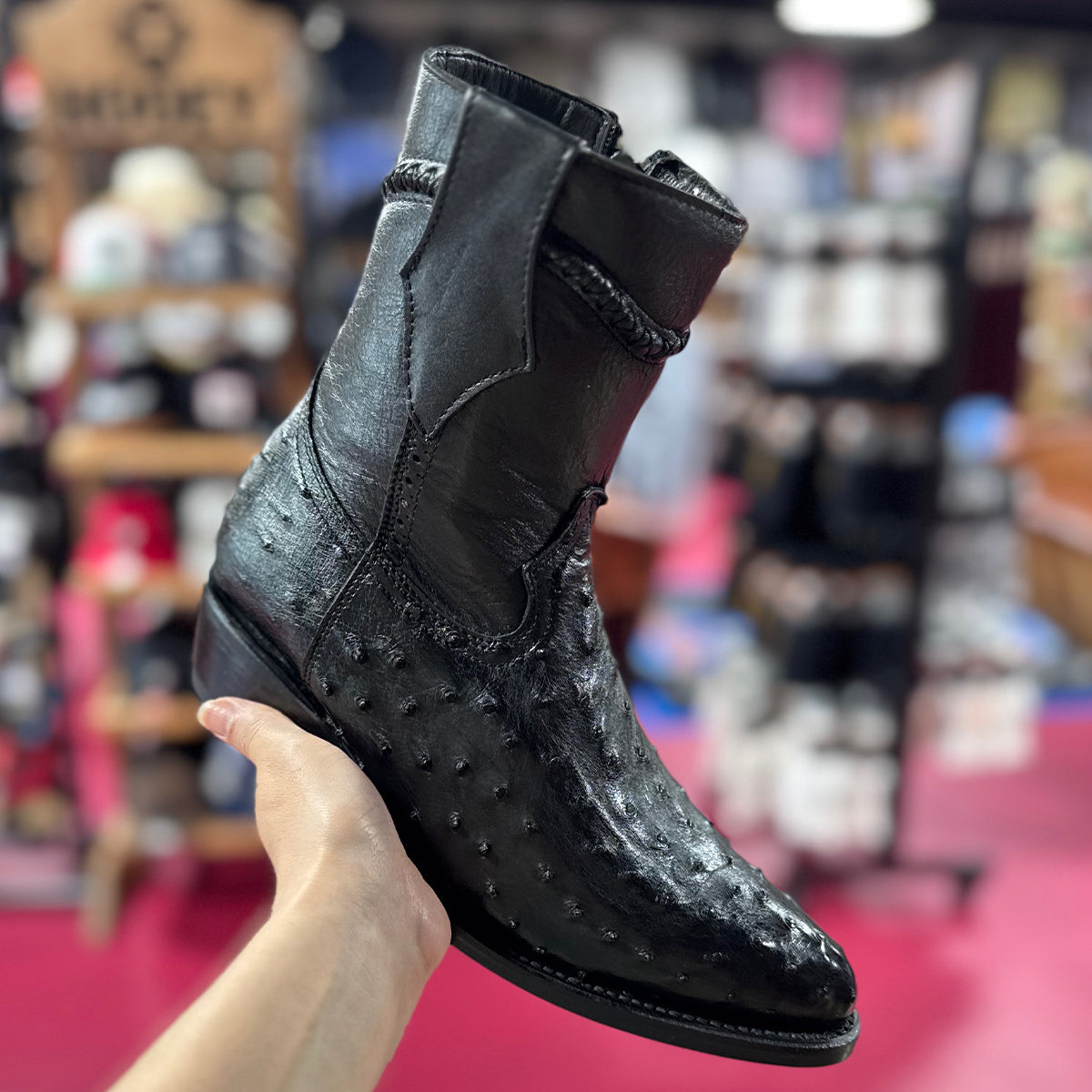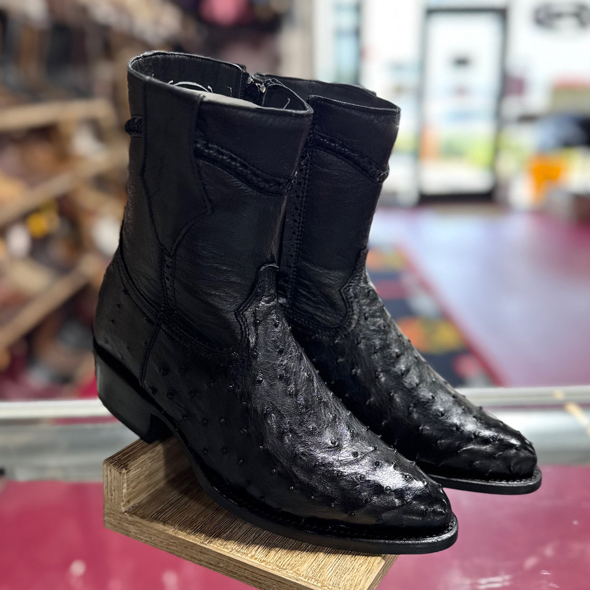 Defy the status quo and stride in style with these low ankle ostrich cowboy boots. These boots are elegant and are perfect to wear with a tapered jeans.