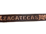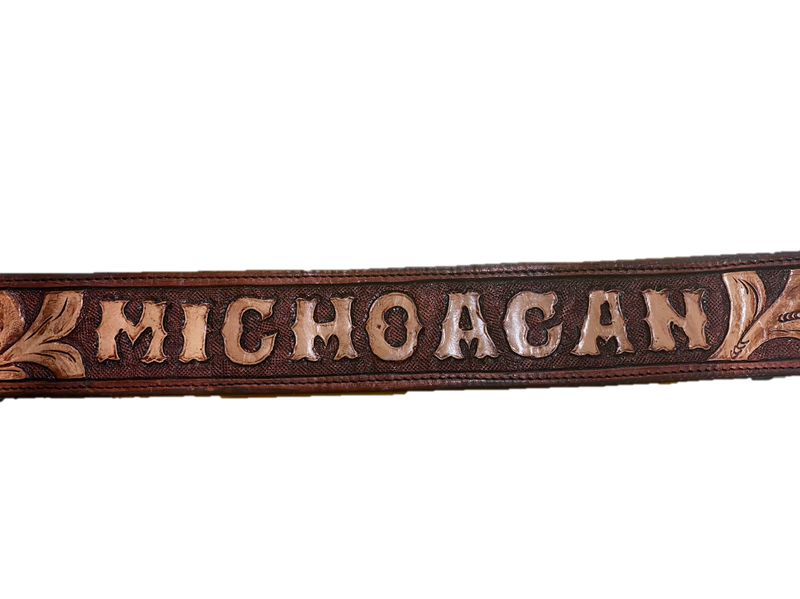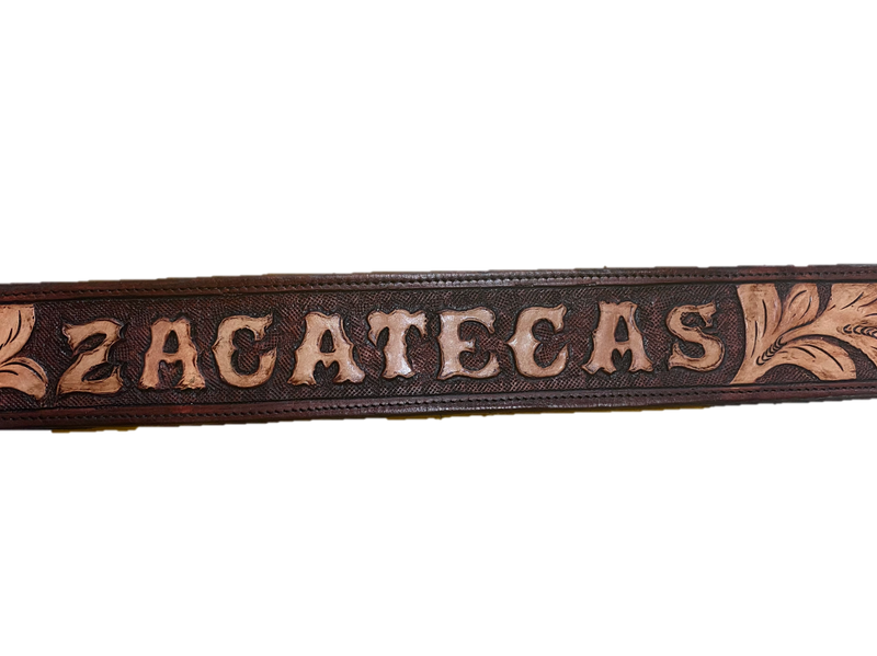 Hand-Tooled western belts with Mexican states names engraved on them. Available in Sinaloa, Zacatecas, Michoacán and Jalisco.