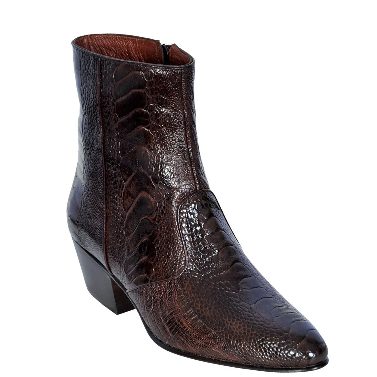 Mens Ostrich Leg Cuban Heel Ankle Boots