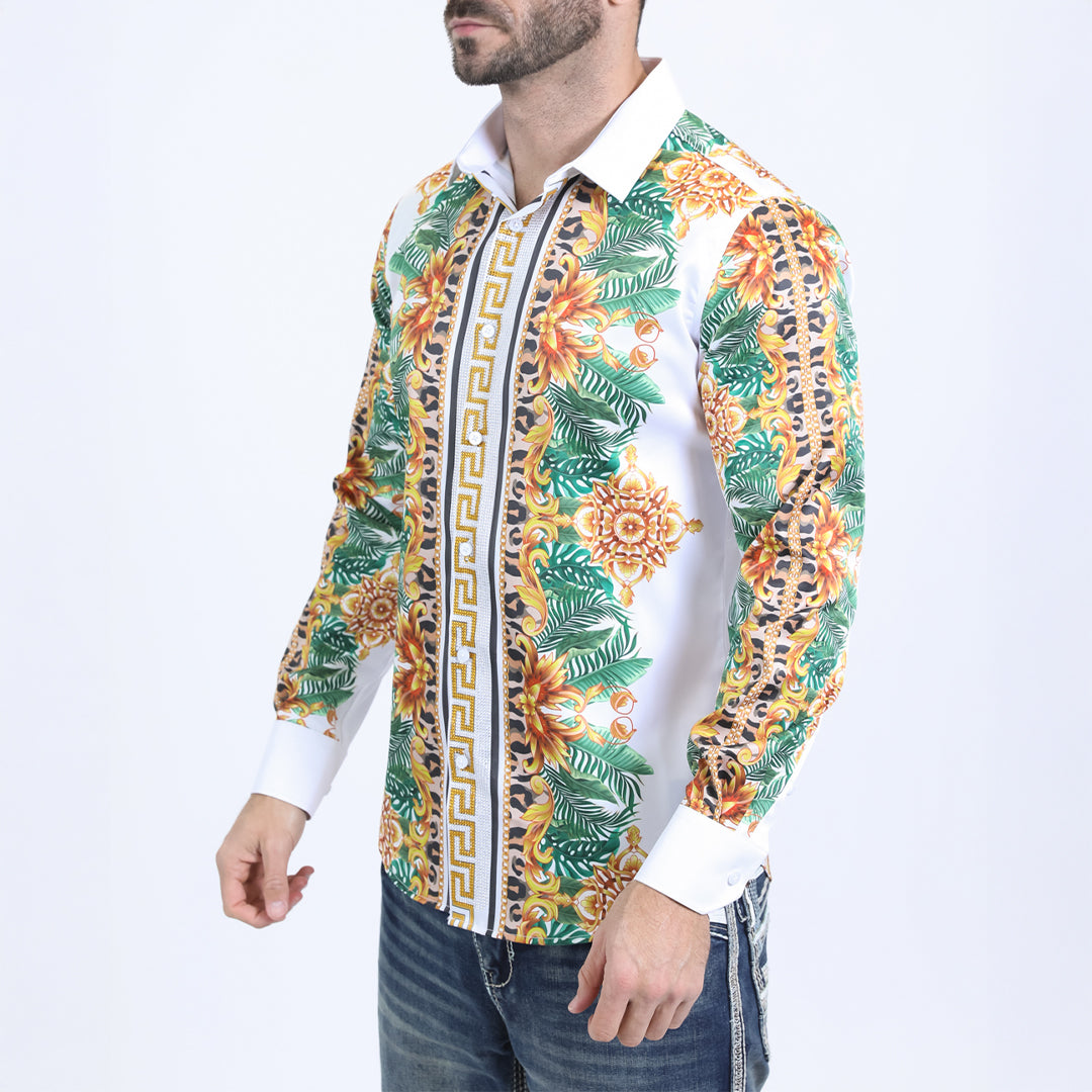A rhinestones applique details brings some fun to this versatile men’s long sleeve shirt. Great for both casual Fridays and family functions, the men’s button-down shirt is made from a soft satin with added stretch to help ensure a comfortable fit. Durable plain weave construction helps to make it a piece you can rely on to last