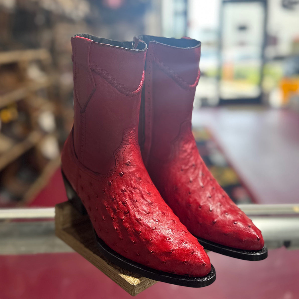 Defy the status quo and stride in style with these low ankle ostrich cowboy boots. These boots elegant and are perfect to wear with a tapered jeans.