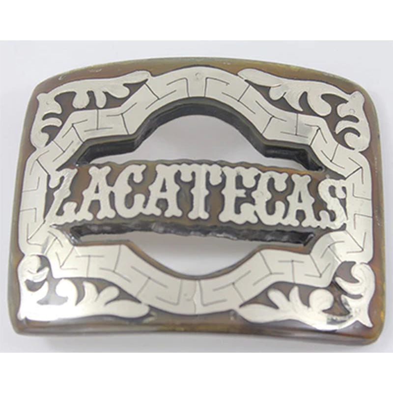 Western buckle made of genuine Bullhorn with metal Zacatecas engraved design.